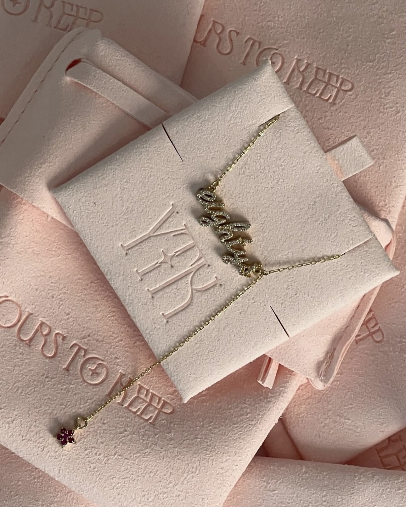This necklace features the world “Eighty’s” with a creative tribute in zircon and a star pendant to those born in the 80s. It’s a sleek design that adds a nostalgic touch, celebrating the unique spirit and style of generation.
